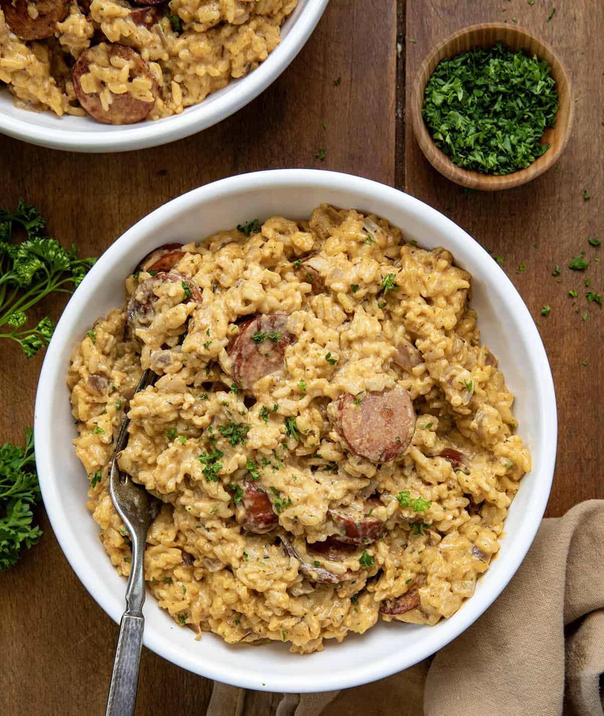 Cajun Sausage and Rice is packed with bold Cajun flavors, from the seasoned rice to the sauce, with browned andouille sausage added to the mix for even more of a kick! If you love a dish with a little heat to it, you will love this! Make it any night of the week for a satisfying meal. If you prefer chicken, my Cajun Chicken and Rice is a great option!