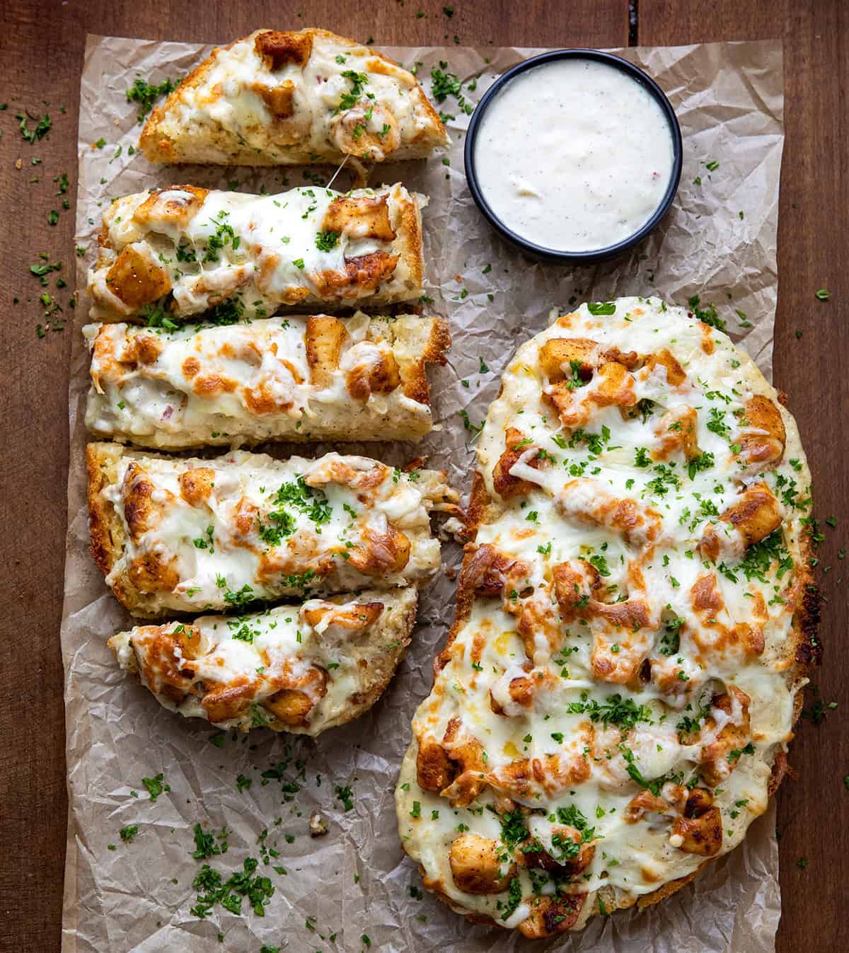 To Reheat: You can reheat chicken alfredo garlic bread in the oven or microwave. I recommend the oven to get that crispiness back.