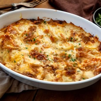 These Cheesy French Onion Scalloped Potatoes are rich, creamy, and loaded with caramelized onions and melty cheese. If you love a good (and possibly the best!) scalloped potato, you’ll definitely want to check out my popular Cheesy Scalloped Potatoes recipe too; it’s another favorite that’s always a crowd-pleaser. Curious about scalloped vs. au gratin potatoes? Check out my quick guide!